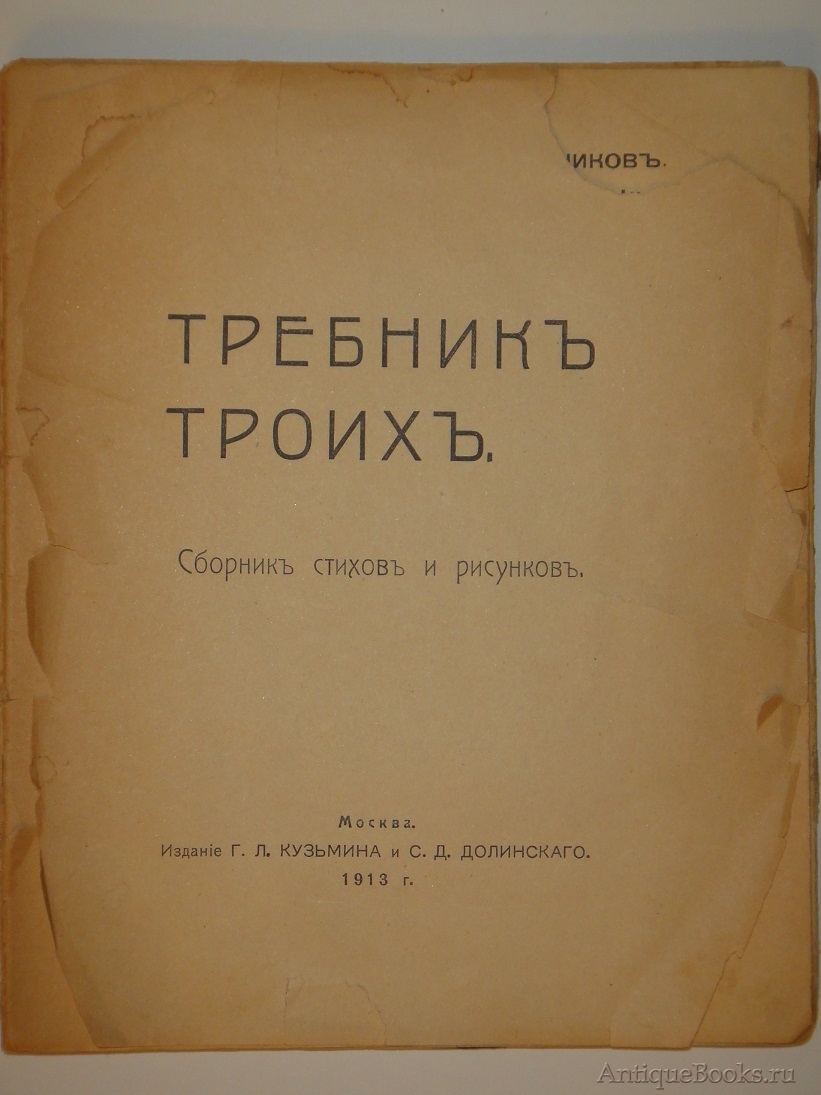 «Требник троих. Сборник стихов и рисунков». Хлебников, Маяковский, Бурлюк Москва, Издание Г.Л.Кузьмина и С.Д.Долинского, 1913г., 1913 год