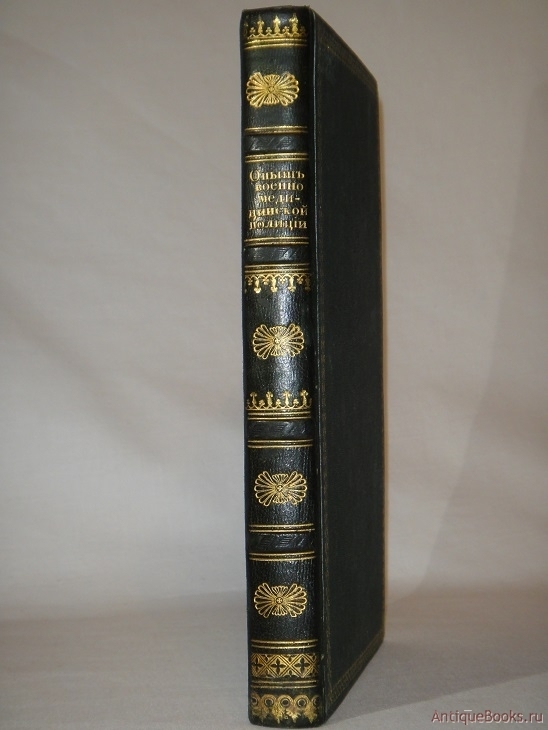 Полное название: Опыт военно-медицинской полиции, или правила к сохранению здоровья русских солдат в сухопутной службе. Сочинение Романа Четыркина, надворного советника и кавалера, Главного медика действующей армии, Императорской медико-хирургической академии члена-корреспондента, Общества русских врачей в Санкт-Петербурге действительного члена. По Высочайшему повелению рассмотренное в Медицинском Совете. Книга из библиотеки Великого князя Константина Николаевича Романова, сына российского Императора Николая I, младшего брата Императора Александра II. Формат: 13,2 * 20,7см.; [6], VIII, 194 стр. Экземпляр в роскошном дворцовом полукожаном переплёте эпохи с золотым художественным тиснением на бинтовом корешке. Крышки оклеены тёмно-зелёным коленкором и обрамлены золототиснёными симметричными декоративными рамками. Муаровые форзацы с экслибрисом Библиотеки Стрельнинского дворца. Трёхсторонний золотой обрез. Шёлковое ляссе. С Посвящением Его Светлости князю Ивану Федоровичу Варшавскому графу Паскевичу-Эриванскому. Первый в России труд, в котором изложены Правила к сохранению здоровья солдата в русской армии. Роман Сергеевич Четыркин ( 1797-1865 ) - выдающийся русский военный врач, пионер военной гигиены и эпидемиологии, системный организатор военного и гражданского здравоохранения, один из первых теоретиков отечественной военно-врачебной экспертизы. Сохранение здоровья русского солдата стало главной темой его профессиональной деятельности на протяжении всей жизни. Родился в городе Рославле Смоленской губернии в семье священника. В 1812г. окончил Смоленскую гимназию, в 1817г. Медико-хирургическую академию в Петербурге, затем служил в армии полковым лекарем. В 1831г. участвовал в польской кампании. С 1832г. старший лекарь главной квартиры русской армии, находившейся на территории Польши. В 1833г. главный медик действующей армии, а с 1848г. - генерал-штаб-доктор. Автор руководств и наставлений по вопросам профилактики инфекционных болезней в войсках и военной гигиены. За изданный в 1834г. замечательный для своего времени труд " Опыт военно-медицинской полиции, или правила к сохранению здоровья русских солдат в сухопутной службе " ( 1834 ) - был избран членом-корреспондентом Медико-хирургической академии и получил степень доктора медицины. Труд был признан официальным руководством для врачей русской армии. В 1836г. организовал при лечебных учреждениях армии " слабосильные команды ", явившиеся прообразом команд выздоравливающих, разработал " Правила о снабжении армии военными врачами и аптекарями ", усовершенствовал военно-медицинский учёт и отчётность. Большой Стрельнинский дворец ( Константиновский дворец ) - дворцово-парковый ансамбль в пригороде Санкт-Петербурга, Стрельне, на южном побережье Финского залива. Принадлежал Российской императорской фамилии. Каждый из собственников дворца проводил масштабные работы по его реконструкции в соответствии с личными архитектурными предпочтениями. Над его обустройством в разные эпохи трудились самые именитые архитекторы: отец и сын Растрелли, Луиджи Руска, Николо Микетти, Андрей Воронихин, Андрей Штакеншнейдер и др. Первым владельцем усадьбы был Пётр Великий; в конце XVIII века Стрельна стала частным великокняжеским владением - в 1797 году Павел I подарил её своему второму сыну Великому князю Константин