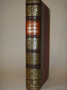 " Аквариум любителя " Н.Ф.Золотницкого - первый капитальный труд по аквариумистике в России, в котором освещены все разделы аквариумного рыбоводства. Книга удостоена Золотой медали Императорского Русского Общества Акклиматизации и Большой почётной медали в Париже. Увеличенный формат: 16,8 * 24см.; XVI, 754 стр. Экземпляр в красивом современном полукожаном владельческом переплёте, стилизованном под переплёт XIX века. Круглёный бинтовой корешок украшен золотым художественным орнаментальным тиснением и контрастной декоративной золототиснёной вставкой. Крышки с углами оклеены мраморной бумагой. Цветные форзацы. Краплёный обрез. Шёлковый каптал и ляссе. Издание напечатано на плотной белой бумаге и украшено 189 политипажами с подрисуночными поясняющими подписями. Под переплётом сохранена родная оригинальная иллюстрированная обложка. Автор посвящает эту книгу: " Другу моему сотоварищу по охоте Андрею Сергеевичу Мещерскому ". Николай Фёдорович Золотницкий ( 1850-1920 ) - выдающийся ихтиолог, пионер российского аквариумного движения, а также международной аквариумистики. Инициатор разработки первого отечественного пособия по организации школьных аквариумов. Наибольшая часть печатных работ Н.Ф.Золотницкого посвящена - аквариумной культуре, ботанике, цветоводству, истории садовых и овощных растений. Отметим лишь некоторые из них: " Водяные растения для аквариумов комнатных, садовых, оранжерейных ", " Новые аквариумные рыбы и растения ", " Наши садовые цветы, овощи и плоды. Их история, роль в жизни и верованиях разных народов и родина ", " Цветы в легендах и преданиях ", " В мире пресных вод ", " Из сказок природы ". Главный труд учёного - " Аквариум любителя " - первый капитальный труд по аквариумистике в России. До революции он выдержал четыре издания; в 1888 году переведён на немецкий язык. За эту книгу автор был награждён Большой золотой медалью Императорского Русского Общества Акклиматизации, золотой медалью в Киеве и Большой почётной медалью в Париже. Из предисловия к первому изданию: " Убедившись на опыте, как мало сходно всё до сих пор написанное в руководствах об аквариумах с действительностью, я решился написать эту книгу, чтобы помочь своим собратьям по охоте и избавить их от тех промахов и ошибок, в которые сам неоднократно впадал и в которые легко может также впасть каждый из них как по неопытности, так и особенно по отсутствию в нашей литературе хороших руководств ". В книге освещены все разделы аквариумного рыбоводства, как то: изготовление аквариумов, их содержание, растения, рыбы, террариумные животные, беспозвоночные, описано строение этих совершенно разных представителей подводного мира, их болезни и лечение, жизненные циклы и " гастрономические предпочтения ", возможности сосуществования с другими живыми организмами и мн. др. Доскональное описание известных на тот момент сведений сочетается с натуралистскими наблюдениями, как самого автора, так и его друзей, сделанные в живой и увлекательной форме. Помимо этого книга является ценным источником, описывающим российскую природу - автор большое внимание придаёт флоре и фауне отечественных водоёмов и часто указывает на наличие тех или иных видов в различных подмосковных реках и прудах. Иногда в книге встречаются и описания быта людей того периода - например, в разделе " Корм и кормление 