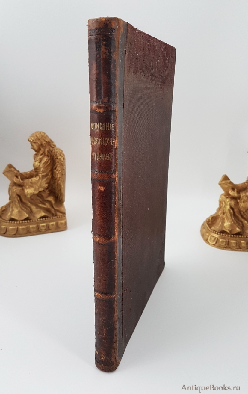 В полукожаном переплете времени издания книги. Увеличенный формат: 27x18.5 см., 184 стр. Иллюстрированное издание - с приложением 15 рисунков. Хорошая сохранность. Полный комплект. Павел Иванович Савваитов (1815–1895), филолог, археограф и историк, член-корреспондент Академии наук, принадлежал к плеяде блестящих ученых второй половины XIX века. Труды Савваитова были созданы в период особого интереса отечественных историков к русским летописям и старинным рукописям, к духу и нравам народа, его традициям и языку. В 1858 году П. Савваитов приступил к составлению универсального справочника по русской старине - книги под названием «Описание старинных царских утварей, одежд, оружия, ратных доспехов и конского прибора». Главным материалом послужили старинные рукописи из архива московской Оружейной палаты. В сочинении П.И.Савваитова поясняются названия одежд, украшений, сортов жемчуга, драгоценных тканей, головных уборов, оружия, доспехов, стягов, конского убранства - всего того, что составляло жизнь средневековой Руси; входят туда и описания старинных вещей, принадлежавших царям Борису Годунову, Михаилу Федоровичу, Алексею Михайловичу, Федору Алексеевичу, царицам Евдокии Лукьяновне, Агафье Симеоновне и царевне Софье Алексеевне. К описанию утваерй также прилагались таблицы-рисунки, наглядно иллюстрирующие быт русской старины - с максимальной точностью они воспроизводятся и в настоящем издании. Тщательное исследование старинных текстов сделало издание Савваитова настольным справочником для исследователей и любителей российской истории, прекрасным подспорьем в понимании жизни и обстоятельств быта древней Руси.