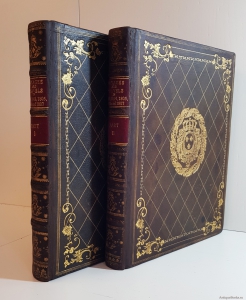 Издание большого формата в двух старинных цельнокожаных переплетах эпохи с художественным золотым тиснением. Периметр крышек переплета с двух сторон обрамлен растительным орнаментом, в центре находится суперэкслибрис с изображением королевской (бурбонской) лилии под короной. Данные книги предположительно принадлежали Карлу X (король Франции с 1824 по 1830 годы, до 1824 года — граф д’Артуа и титулярный герцог Овернский. Внук Людовика XV, младший брат Людовика XVI и графа Прованского (будущего Людовика XVIII). Граф Артуа (Карл X) находился в Эдинбурге до 1814 года, и только когда Наполеон I был низложен, вернулся во Францию.