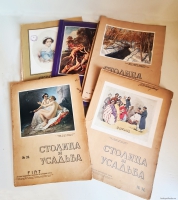 Большой формат: 36,5x27 см. Богато иллюстрированное издание. Качественная мелованная бумага. Журналы печатались в лучшей столичной типографии "Товарищество Р.Голике и А.Вильборг". Журнал посвящен русской усадьбе в аспекте архитектурного, ландшафтного, интерьерного искусства. Каждый выпуск содержит материалы, рассказывающие о прошлом и настоящем наиболее примечательных усадеб Российской империи, их хозяевах и художественных собраниях. Журнал богато иллюстрирован произведениям изобразительного искусства и фотографиями. В журнале сотрудничали известные ученые: пушкинист Н. О. Лернер (редактор), искусствоведы Г. К. Лукомский (автор очерков об истории усадеб) и И. И. Лазаревский (автор очерков об истории коллекционирования), библиограф В. А. Верещагин. Печатались писатели-беллетристы, работавшие в легком «галантном» стиле: Н. Я. Агнивцев, Ю. Д. Беляев и другие. Номера: №34 - 2, 24 стр. В хорошем состоянии. Новый номер журнала рассказывает об усадьбе Корытово (близ Пскова), так же, как и ныне знаменитые усадьбы Пушкиногорья, расположенной на реке Великой, вспоминает о тех, кому была доступна «интимная поэзия старинной музыки», удивляет историями различных музыкальных инструментов, знакомит с выставкой А. Н. Бенуа и продолжает фоторепортаж «Женщина до и после войны», рассказывающий о «звездах» любительской сцены Петрограда 1915 года. №44 - 24 стр. В отличном состоянии. 1 иллюстрация на вклейке. В этом номере читатель найдет подробное описание усадьбы Волокитин (Черниговская губерния) графини Олсуфьевой, урожденной Миклашевской с прекрасными видами дома, парка, уникальными дворцовыми интерьерами . Усадьба Волокитин знаменита и своим фарфором, который производили ее владельцы Миклашевские, в интерьере присутствовали уникальная фарфоровая люстра и рама для зеркала своего производства. №49 - 24 стр. В очень хорошем состоянии. 1 иллюстрация на вклейке. Последние десятилетия XIX века отличались необыкновенной активностью великосветских любителей театра. Номер повествует о спектаклях, поставленных у князя Волконского и графа Шереметева, в которых нередко принимали участие члены царской семьи. С неожиданной – гастрономической – стороны авторы исследуют биографию Пушкина. Гармония, свойственная ему в творчестве, распространялась и на его обыденную жизнь: Пушкин был истинным гурманом, который умел наслаждаться простыми вещами, а неумеренность в еде и питье была ему противна. В материале «Как создавался оркестр»: история арфы, олифанта, волынки, тромбона и т.д. рассказывается в контексте усложнения музыкальных сочинений, которые к концу XVI века стали создаваться специально для оркестра. №51 - 24 стр. В очень хорошем состоянии. 1 иллюстрация на вклейке. Усадьбами номера стали Селезневка - новомодная вилла Мсцеховского (Екатеринославская губ.), поразившая искусствоведа Г. Лукомского и архитектурой, и убранством интерьеров, в которых присутствовали настоящие жемчужины искусства - мебель королевских стилей, персидские ковры, гобелены на сюжеты Лафонтена - и Котовка князя Урусова - образец старопоместной малороссийской усадьбы с великолепием залов и мебелью, хотя и "не дедовской. а отцовской" - рококо эпохи Александра II. Собрание старины княгини Марии Голицыной составило бы честь любому музею - живопись, мебель, китайские вазы, поповский фарфор. Рядом с 