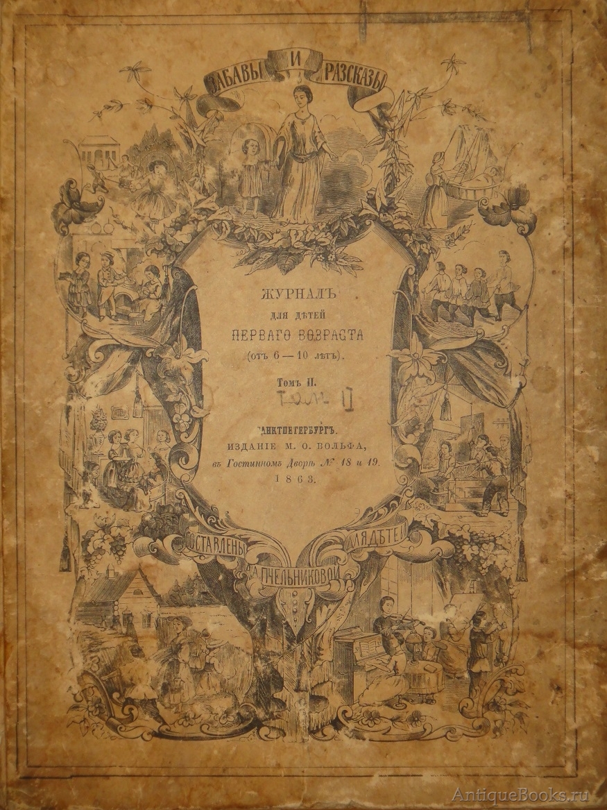 «Забавы и рассказы. Журнал для детей первого возраста. Том II». Составлены А.Пчельниковой С.-Петербург, Издание М.О.Вольфа, 1863 г., 1863 год
