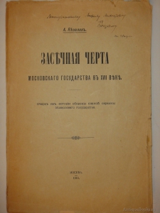 «Засечная черта Московского государства в XVIII веке. Очерк из истории обороны окраины Московского государства». А.И.Яковлев Москва, Типография Г.Лисснера и Д.Савко, 1916г., 1916 год