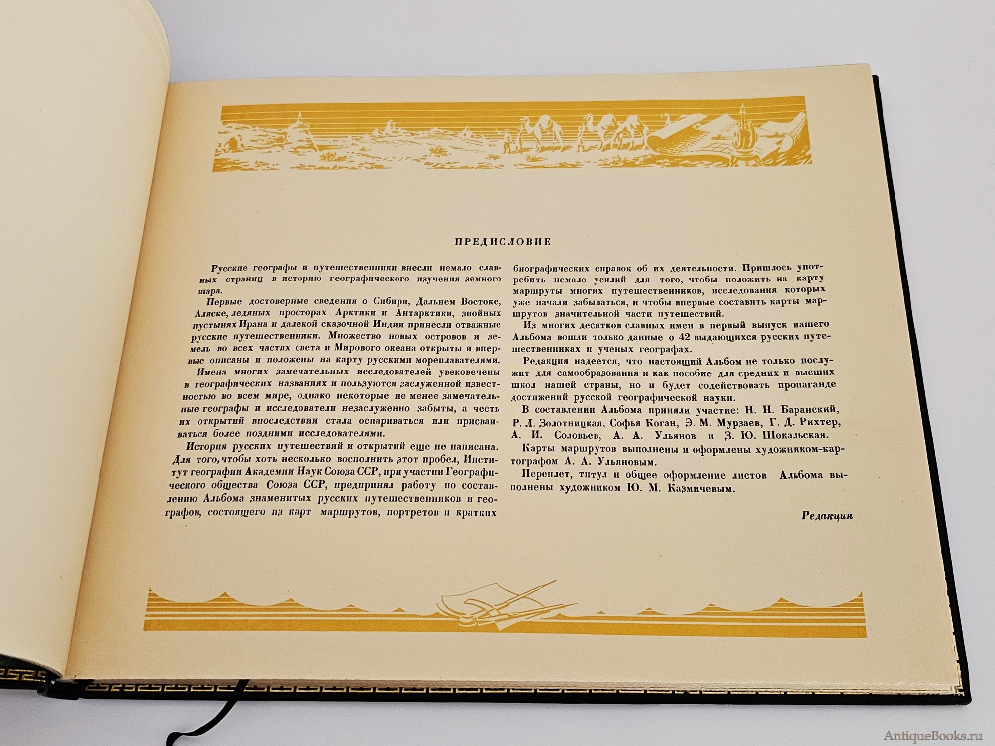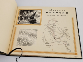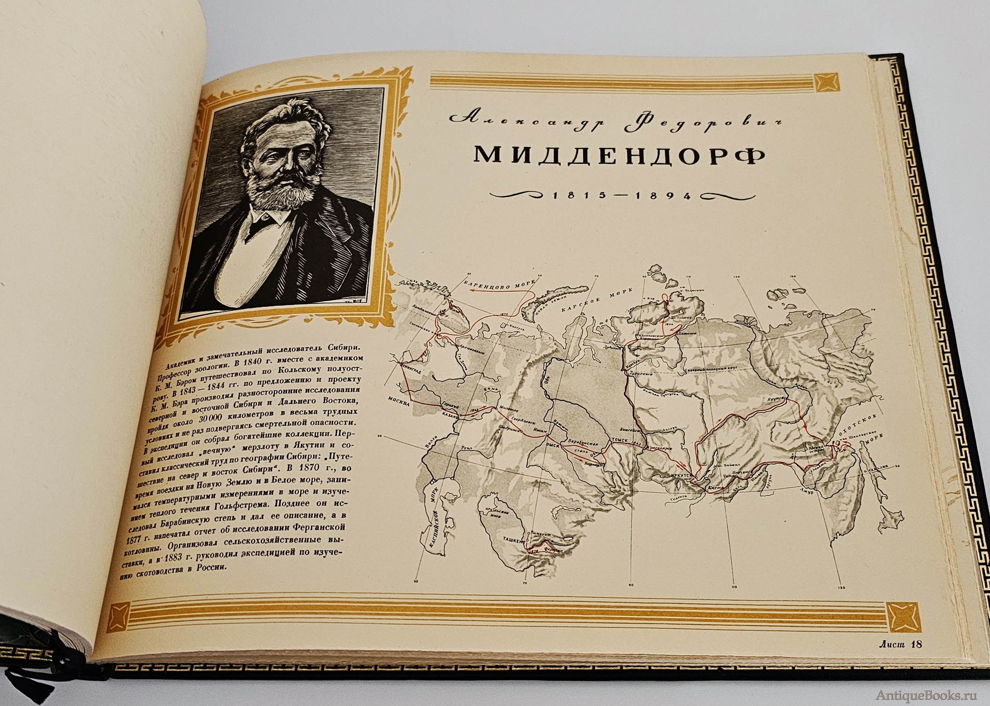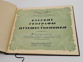 * * * Фотографии подарочной книги: "Русские географы и путешественники", Под редакцией академиков А.С. Берга, А.А. Григорьева и члена-корреспондента И.И.Баранского, Москва - Ленинград, Издательство "Искусство", 1948 год: |