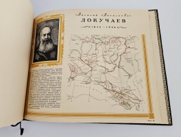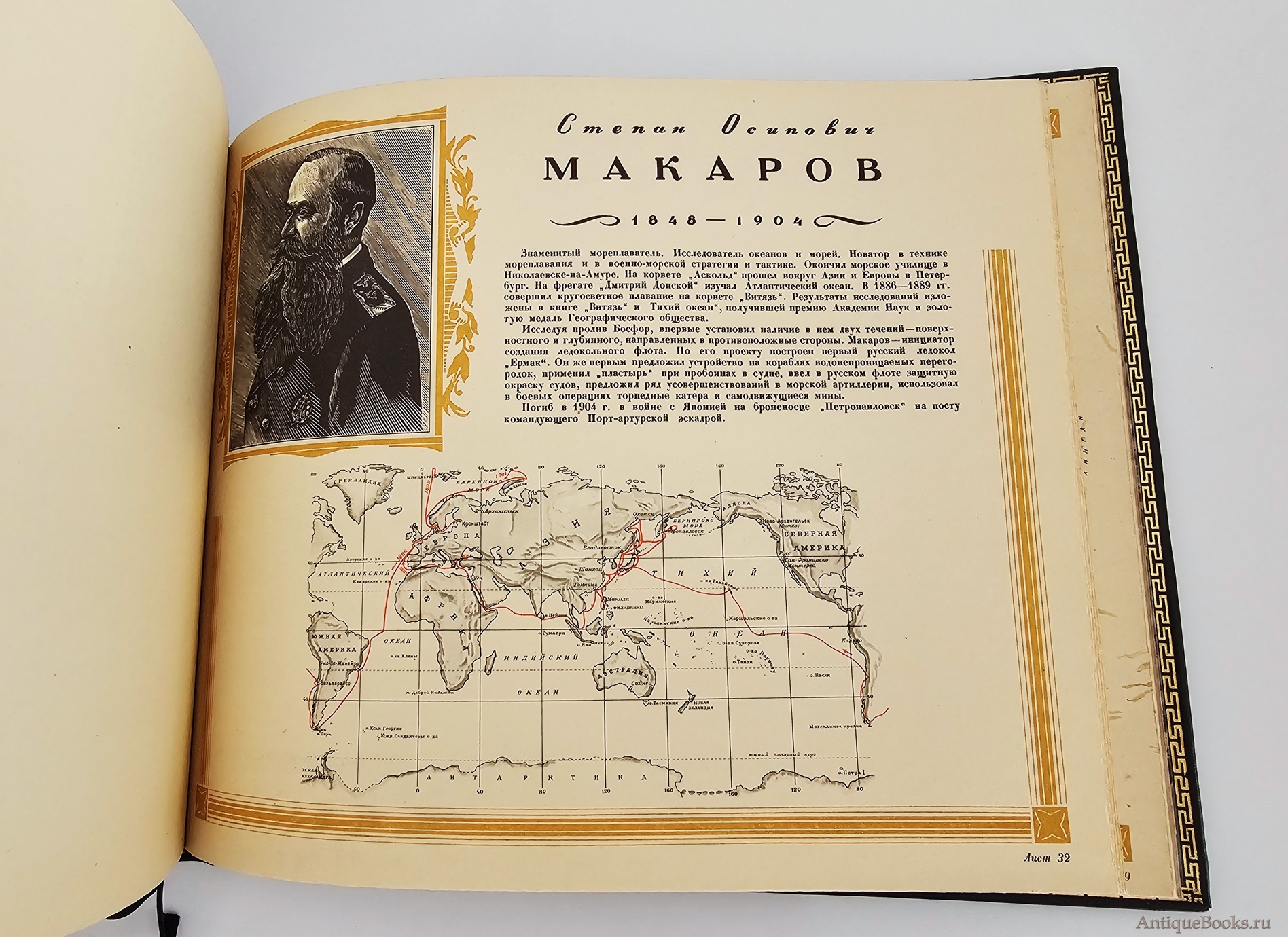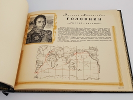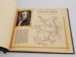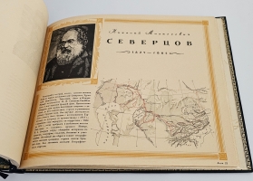 Подарочный альбом. Содержит информацию о 42-х знаменитых русских географах и путешественниках, внесших большой вклад в отечественную науку. Каждый лист этого увлекательного антикварного издания - это гравюры на дереве художников: Е.Голяховского, З.Горобовца, А.Соловейчика, В.Смирнова, Ю.Ростовцева, Н.Шевердяева, А.Критской, П.Павлинова. Титул и общее оформление листов выполнены художником Ю.М. Казмичевым. 48 листов. Большой формат: 33x28 см. Издание обладает антикварной и исторической ценностью! Великолепный подарок! Очень красивый переплет авторской ручной работы. Образец современного переплетного искусства, созданный на основе традиций художественных переплетов 19 века. Высококачественная шагреневая кожа. Оригинальное золотое и блинтовое тиснение. В книге представлены биографические справки о деятельности и выдающихся экспедициях знаменитых русских путешественников и ученых-географов, с картами их путешествий, маршрутом. Среди знаменитых географов-путешественников и великих ученых представлены: И.П.Семенов-Тянь-Шанский, Г.Е.Грумм-Гржимайло, Н.М.Пржевальский, С.П.Крашенинников, В. Беринг, Д.и.Х. Лаптевы, М.В.Ломоносов, И.И.Лепехин, И.Ф.Крузенштерн, Ю.Ф. Лисянский, В.М.Головнин, Ф.Ф,Беллинсгаузен, М.П.Лазарев, А.Никитин, В.Прончищев, Н.Я.Озерецковский, Н.Н.Миклухо-Маклай, Г.Н.Потанин, С.О.Макаров, В.И.Роборовский, П.А.Кропоткин, Н.А.Северцов, А.П.Федченко и другие, многие из которых являлись членами Русского Географического Общества. В этом альбоме впервые составлены карты маршрутов значительной части путешествий русских ученых. Карты маршрутов выполнены и оформлены художником-картографом А.А.Ульяновым. Русские географы и путешественники внесли немало славных страниц в историю географического изучения земного шара. Первые достоверные сведения о Сибири, Дальнем Востоке, Аляске, ледяных просторах Арктики и Антарктики, знойных пустынях Ирана и далекой сказочной Индии принесли отважные русские путешественники. Множество новых островов и земель во всех частях света и Мирового океана открыты и впервые описаны и положены на карту русскими мореплавателями. Имена многих замечательных исследователей увековечены в географических названиях и пользуются заслуженной известностью во всем мире, однако некоторые не менее замечательные географы и исследователи незаслуженно забыты, а честь их открытий впоследствии стала оспариваться или присваиваться более поздними исследователями.