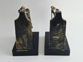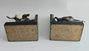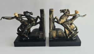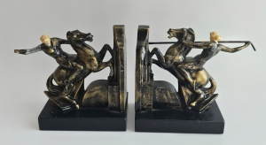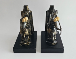 Две парные подставки для книг. Девушка-копьеносец на коне. Середина XX Века (195x). США. На одной статуэтке отсутствует копье, и кисть. 143x125x80 мм. каждая.