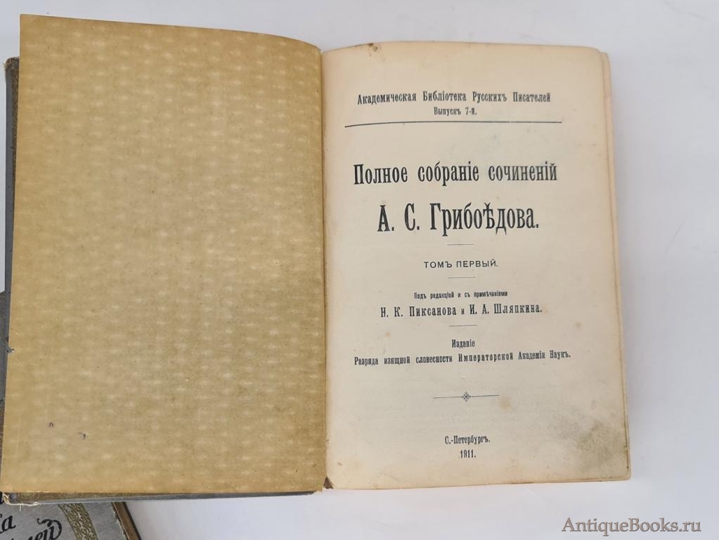 «Полное собрание сочинений А.С.Грибоедова. Том 1». А.С.Грибоедов СПб, Издание Разряда изящной словесности Императорской Академии Наук, 1911 г., 1911 год