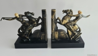 Середина XX века Две парные подставки для книг. Девушка-копьеносец на коне. Середина XX Века (195x). США. На одной статуэтке отсутствует копье, и кисть. 143x125x80 мм. каждая.