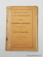 Петроград-Киев, Издание "Сотрудника", 1918 г. Приложение к книге К.Ф.Лебединцева "Учение о простейших функциях, их графиках и теория пределов", 73 чертежа на 11 таблицах. В издательских обложках,в хорошей сохранности, на некоторых...
